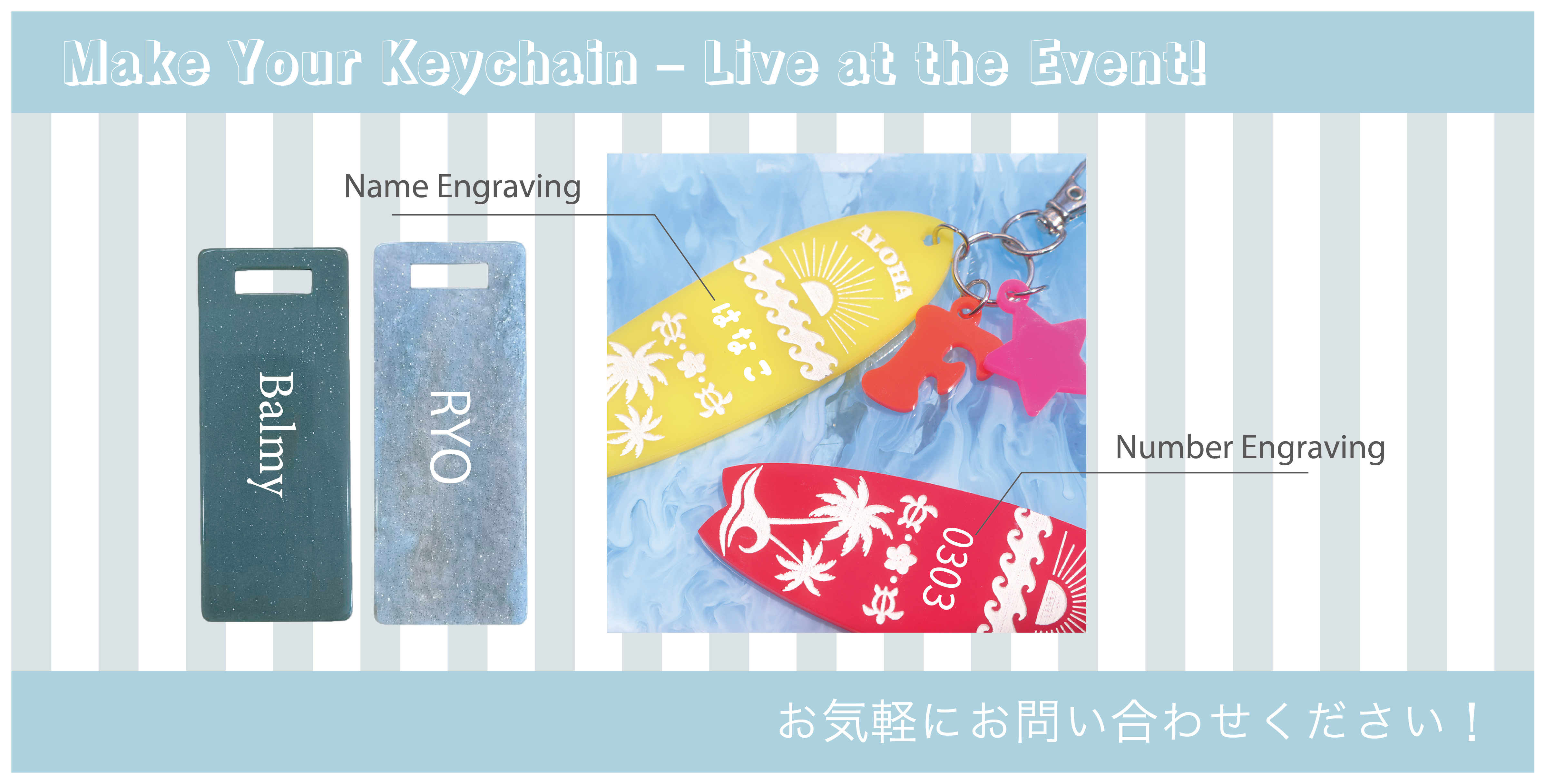 POP UPや各種イベントの際、その場でアクリルへの彫刻やオリジナルキーホルダーの作成 が可能です。