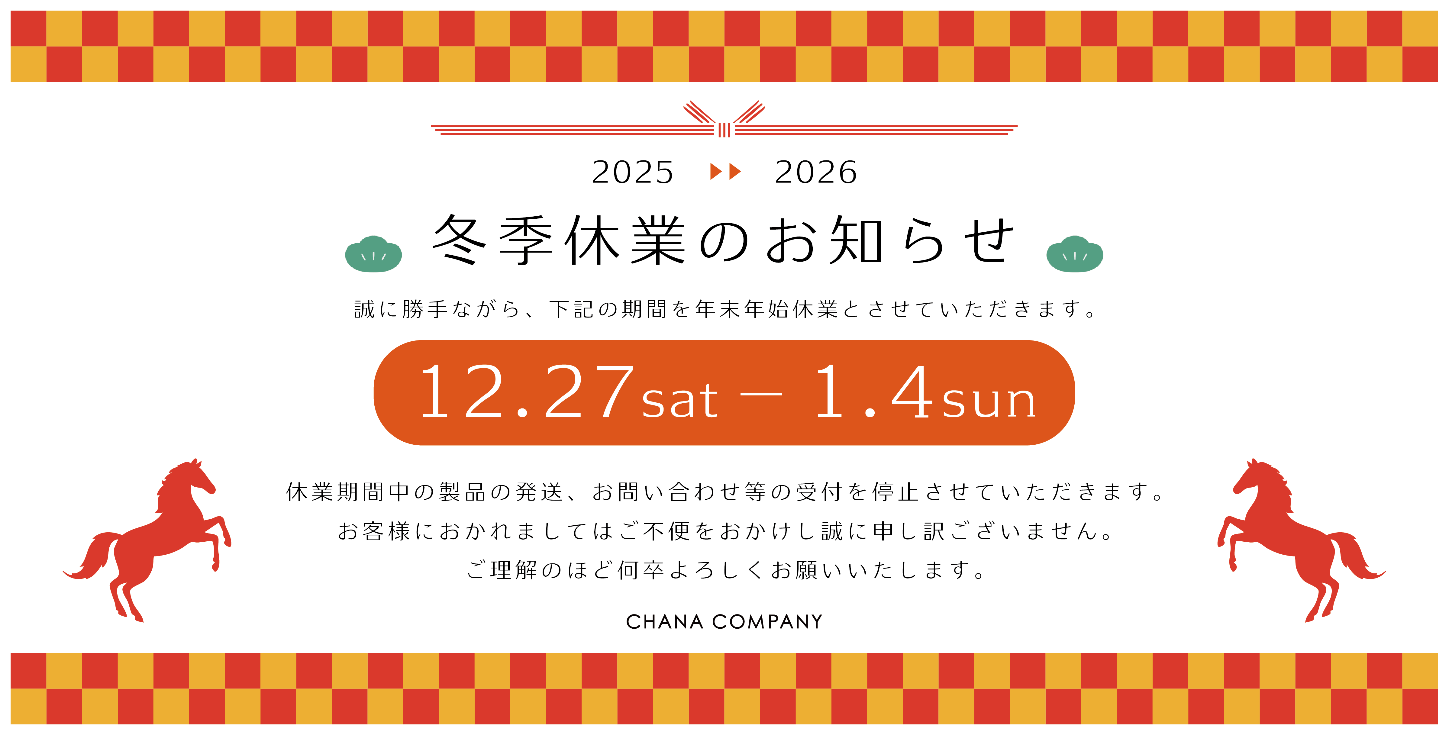 ■年末年始休業のお知らせ■チャナカンパニーnews