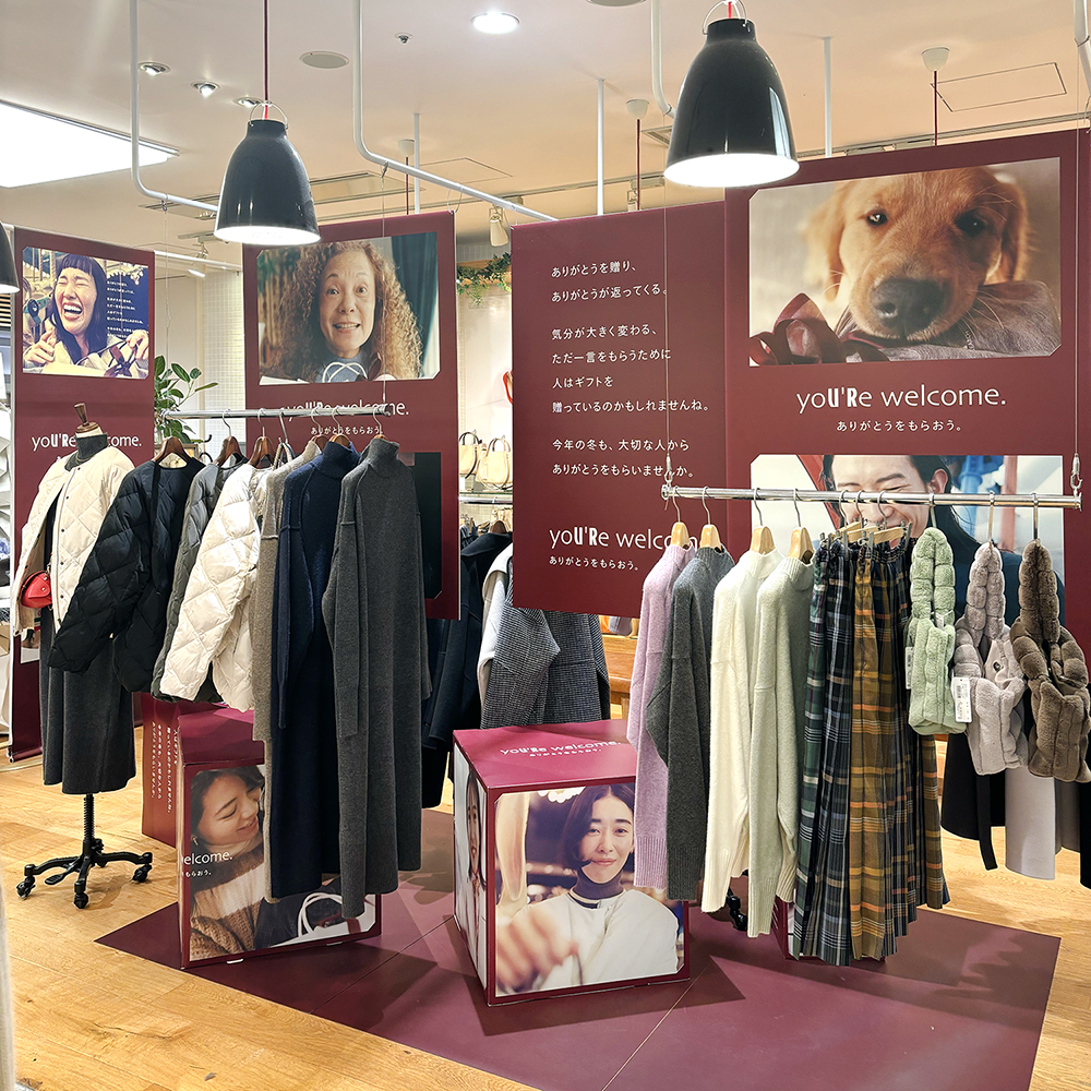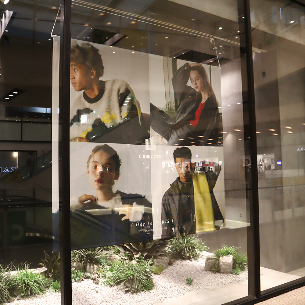 タペストリーは、ブランドの世界観やシーズン感をさりげなく伝え、