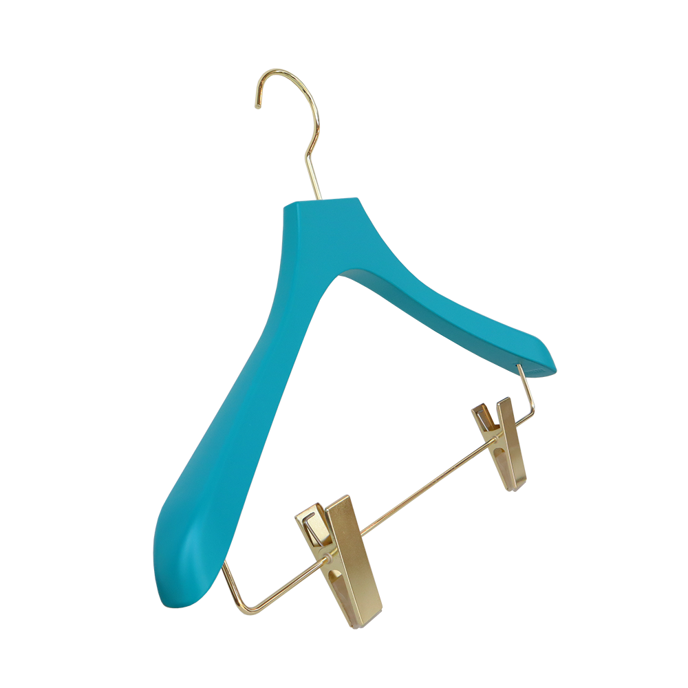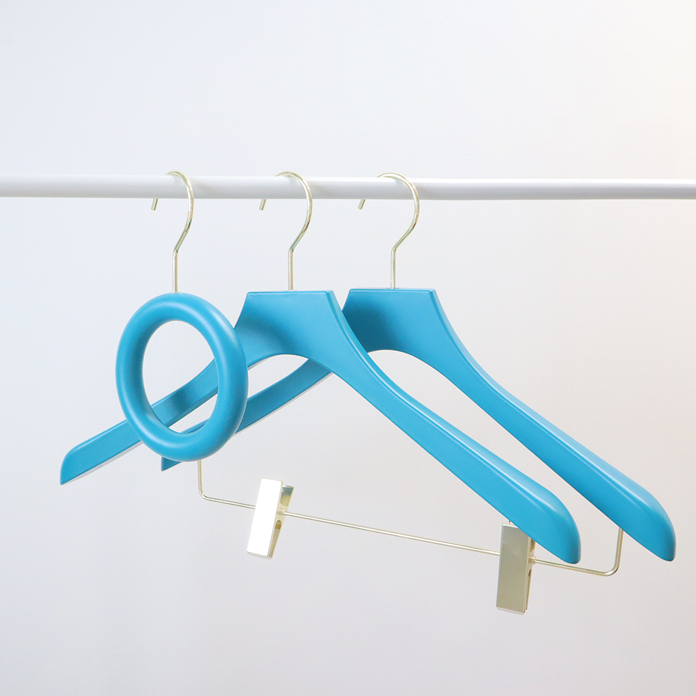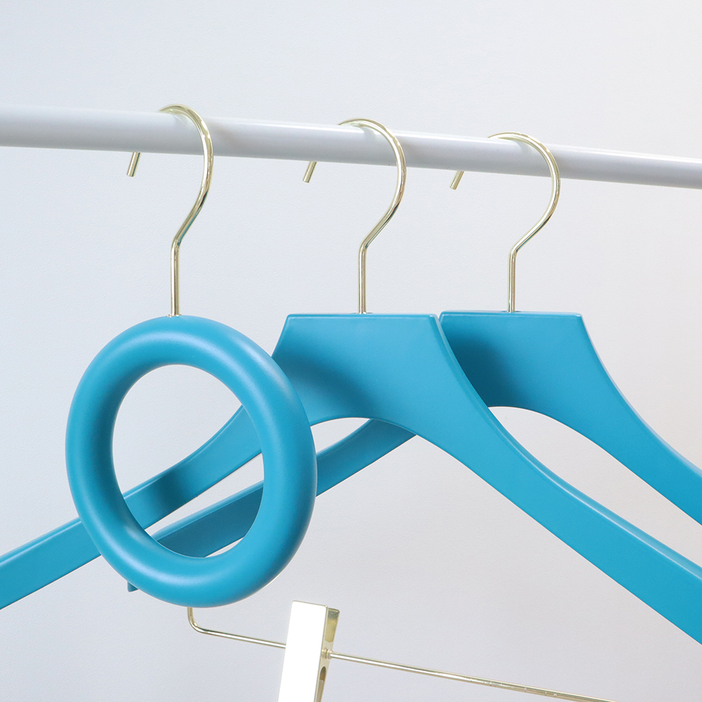ハンガーバルミーハンガー オリジナル バルミーリングハンガー(セットアップ用)です。 今回は鮮やかなターコイズカラーに、ゴールドメッキのパーツを合わせました。 セットアップ用にもボトムス単体にもお使いいただけます。 ロゴ入れも可能です。是非ご相談ください。 バルミーハンガーは特許を取得したチャナオリジナルのハンガーラインです。 デザイン性の高さ、一体成型による軽さと高い耐久性を持つハイスペックなハンガーです。 そのため、多くのアパレルブランドに導入されています。 ●SPEC より詳しいサイズや仕様をご覧になりたい方は最下ページのお問い合わせフォームからお気軽にご連絡ください。 ターコイズ バルミーハンガーはこちら▼ 【オーダーメイド商品】 H134_オリジナル バルミーリングハンガー(スカーフ用) お問い合わせはこちら 関連商品 【オーダーメイド商品】H38_FSC認証木製ハンガー(トップス用)(TRUNKホテル様) 【オーダーメイド商品】 H89_オリジナル バルミーハンガー(ボトムス用) 【オーダーメイド商品】 H97_オリジナル アクリルハンガー( トップス用) 【オーダーメイド商品】H19_バルミーハンガー (MACKAGE(マッカージュ)様)